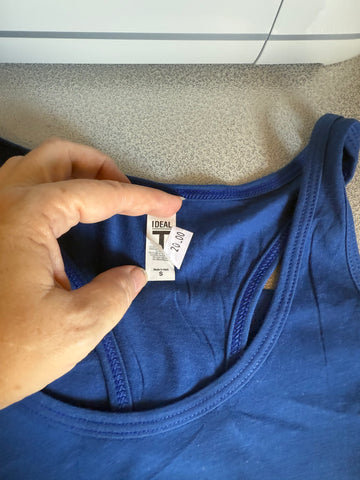 Handcrafted Navy tank top with gold glitter vinyl with “Let’s get Nauti” and an anchor on it.